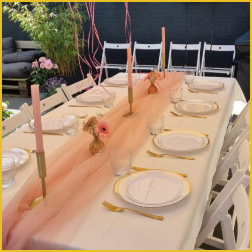 Wij geloven in de kracht van eenvoud en de magie van detail. Als specialist in het verhuur van witte houten klapstoelen en witte houten klaptafels, zorgen wij ervoor dat jouw setting moeiteloos aansluit bij de sfeer van jouw evenement.